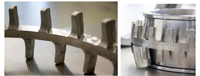 機加工鋼保持架,其特點在于加工精度高,潤滑空間大,軸承裝配需要輔助加熱裝置熱裝,其整體成本較高。