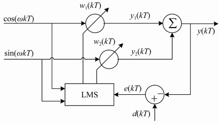 文獻(xiàn)[26]提出了一種基于頻域自適應(yīng)的LMS算法,單一通道不平衡振動(dòng)自適應(yīng)控制框圖如圖14所示,其以諧波振動(dòng)作為輸入,參考輸入為引入的與傳感器跳動(dòng)具有相同分量的正弦信號(hào),仿真結(jié)果表明該方法能有效提取磁懸浮轉(zhuǎn)子不平衡同頻振動(dòng)信號(hào)。